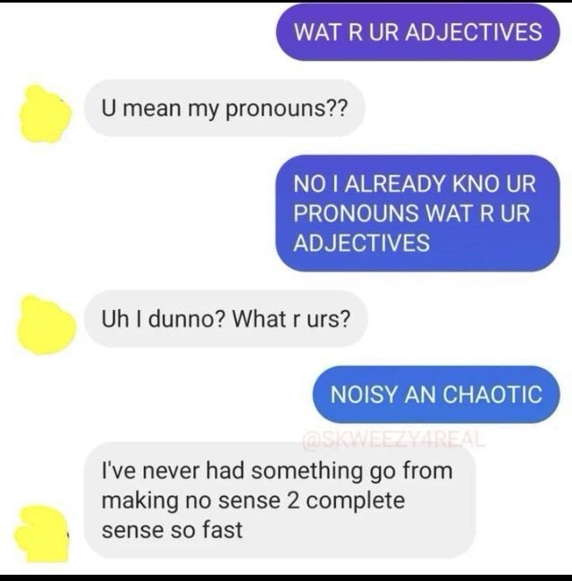 Everyone should have adjectives.