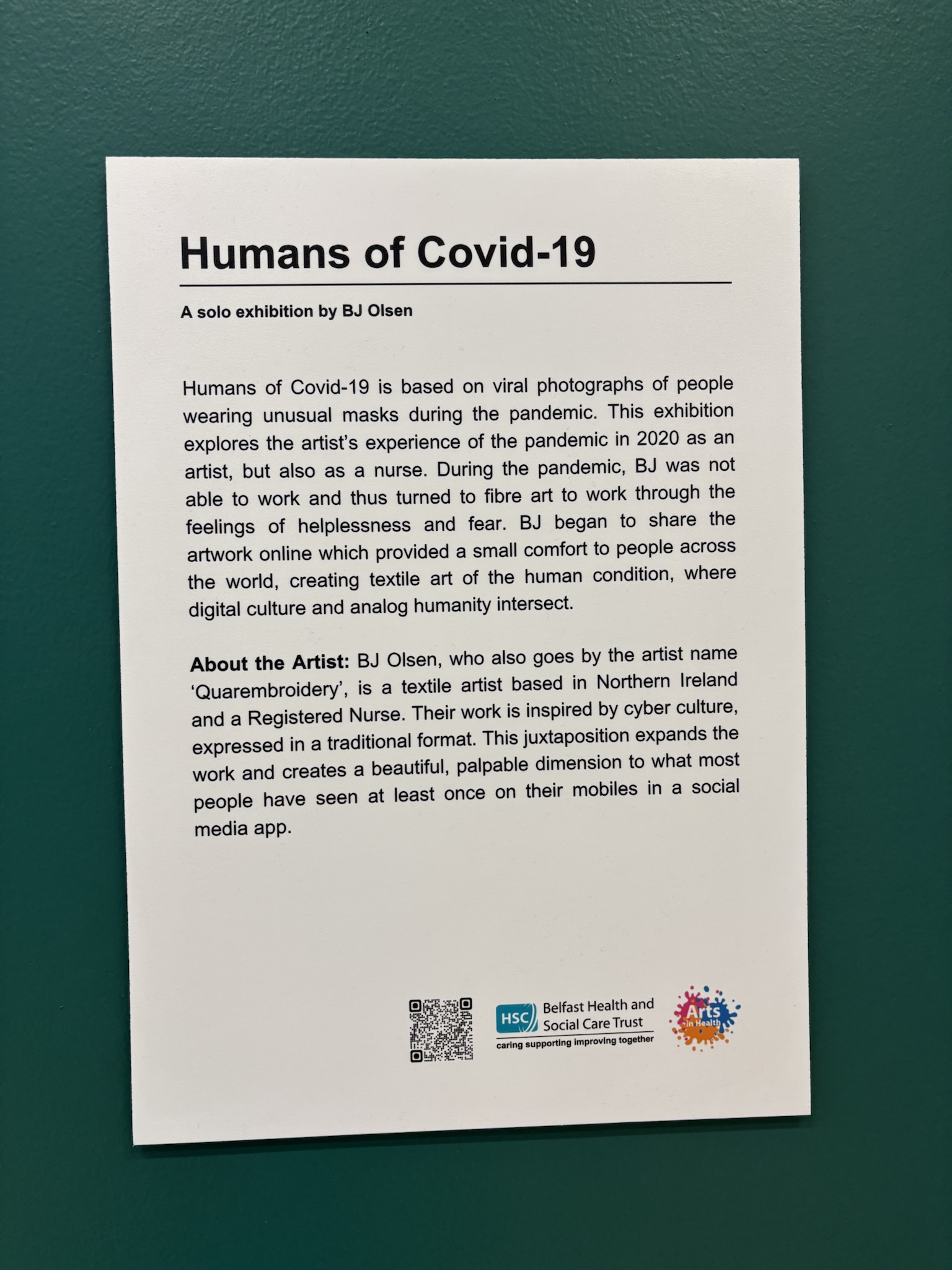 Wee exhibition at Royal Victoria Hospital of my Humans of COVID 19