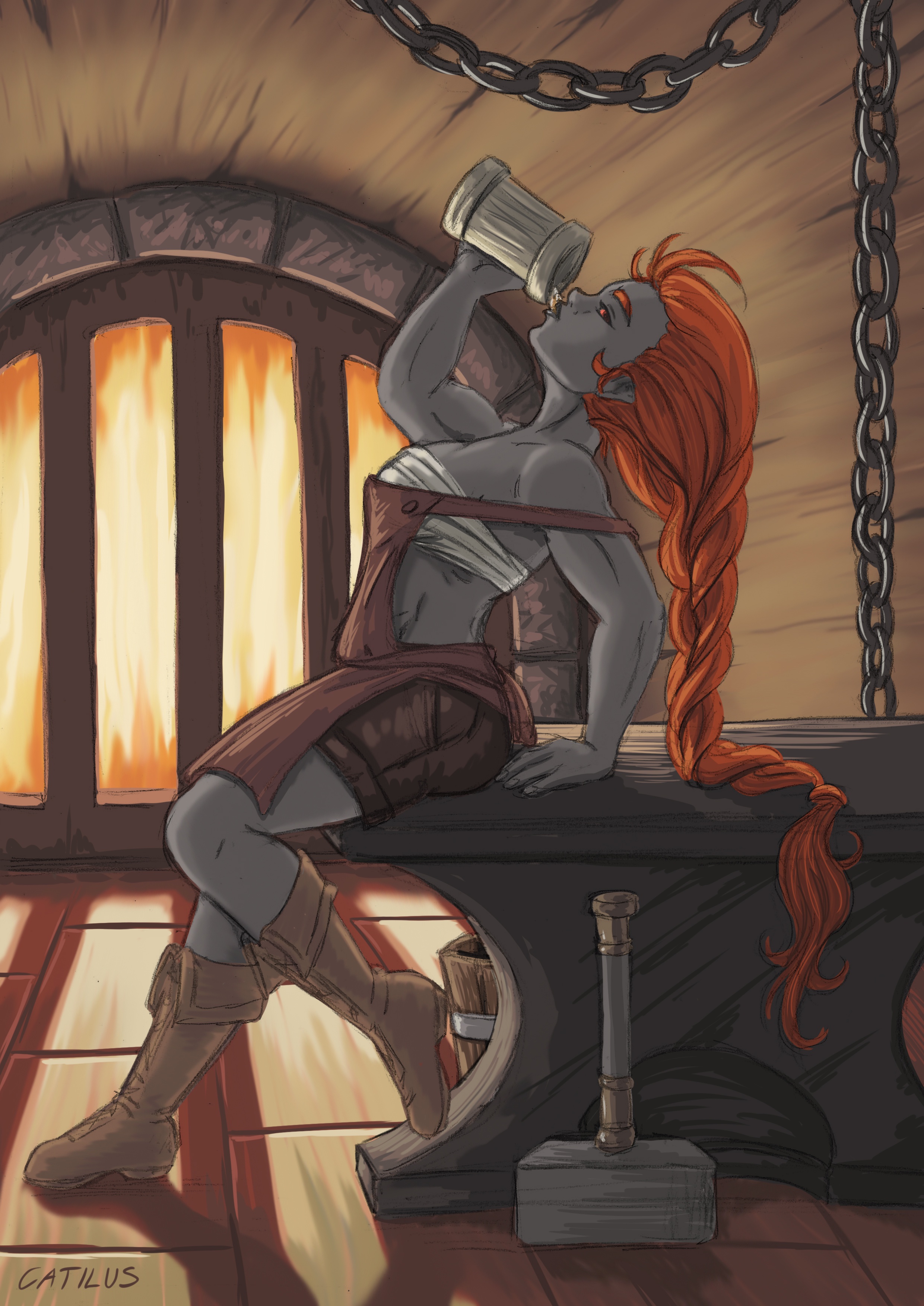 Orika Redshield, Deep Dwarf Paladin and Blacksmith – D&D Character