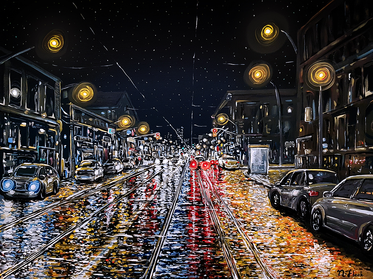 One of my paintings for the late crowd.. . some downtown night city action