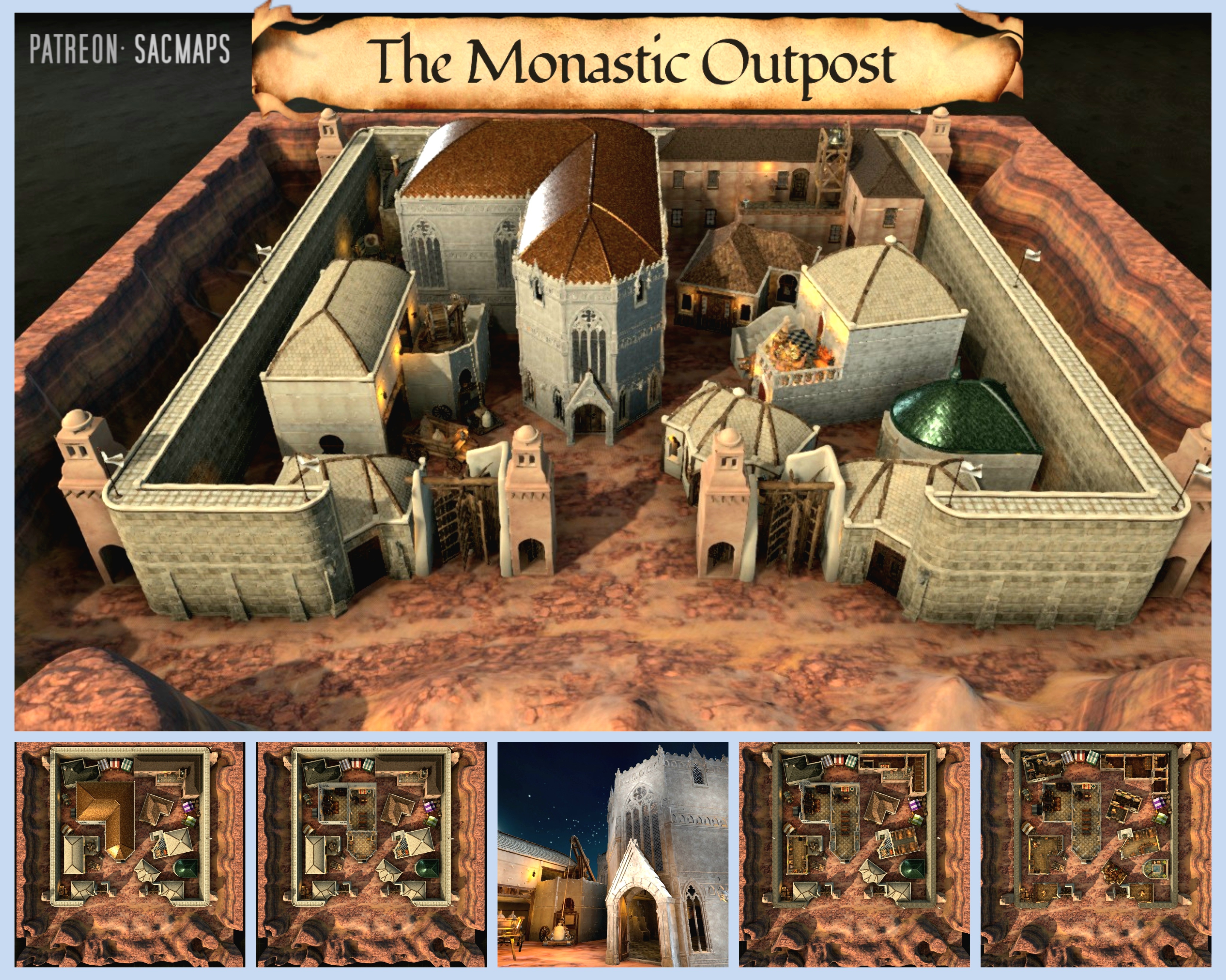 Monastic Outpost (50x50) - Free multilevel DnD / TTRPG maps