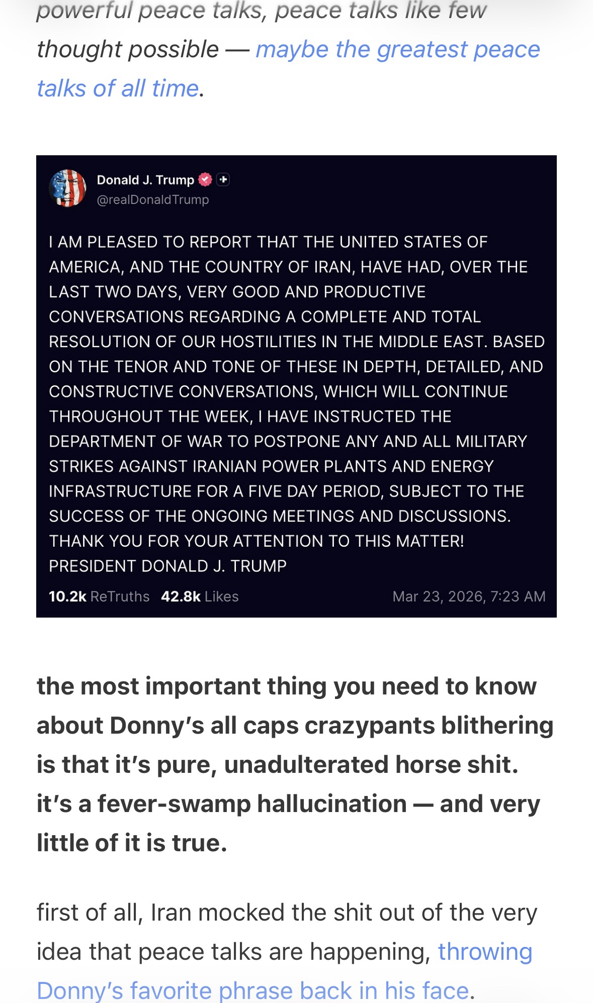 Iran - "It would be a waste of time to respond to such blatherings".
