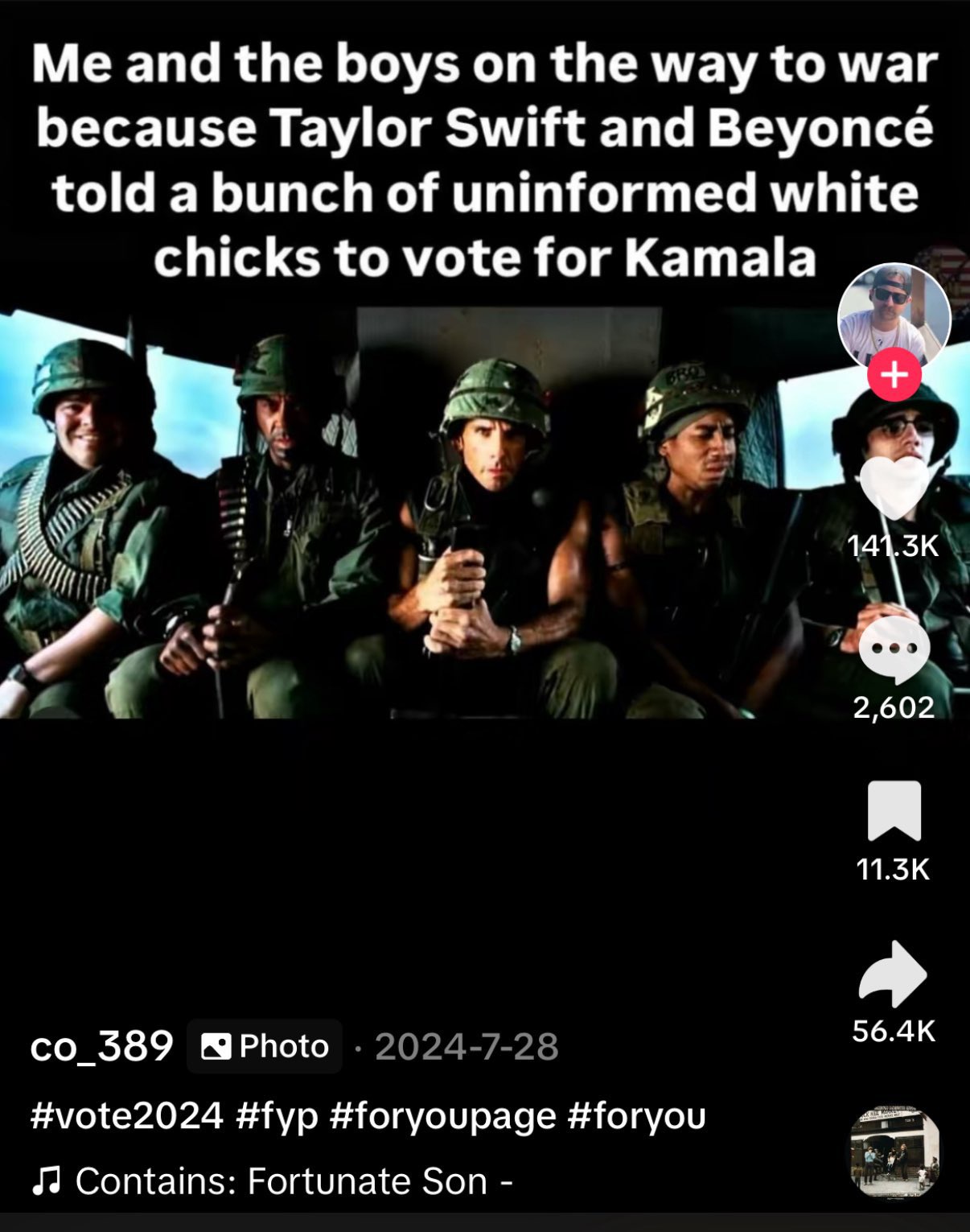 If you're wondering, Trump's son doesn't have to fight in the war.