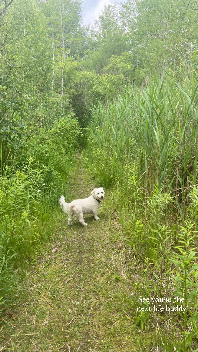 Boiled chicken thigh, rice cooked in the chicken water, bone broth, freeze dried dog food (for the veggies) I cook in bulk, then throw a heaping spoonful of that food with some water and microwave until it’s warm and soft, throw in a cup or so of kibble to fill it out.