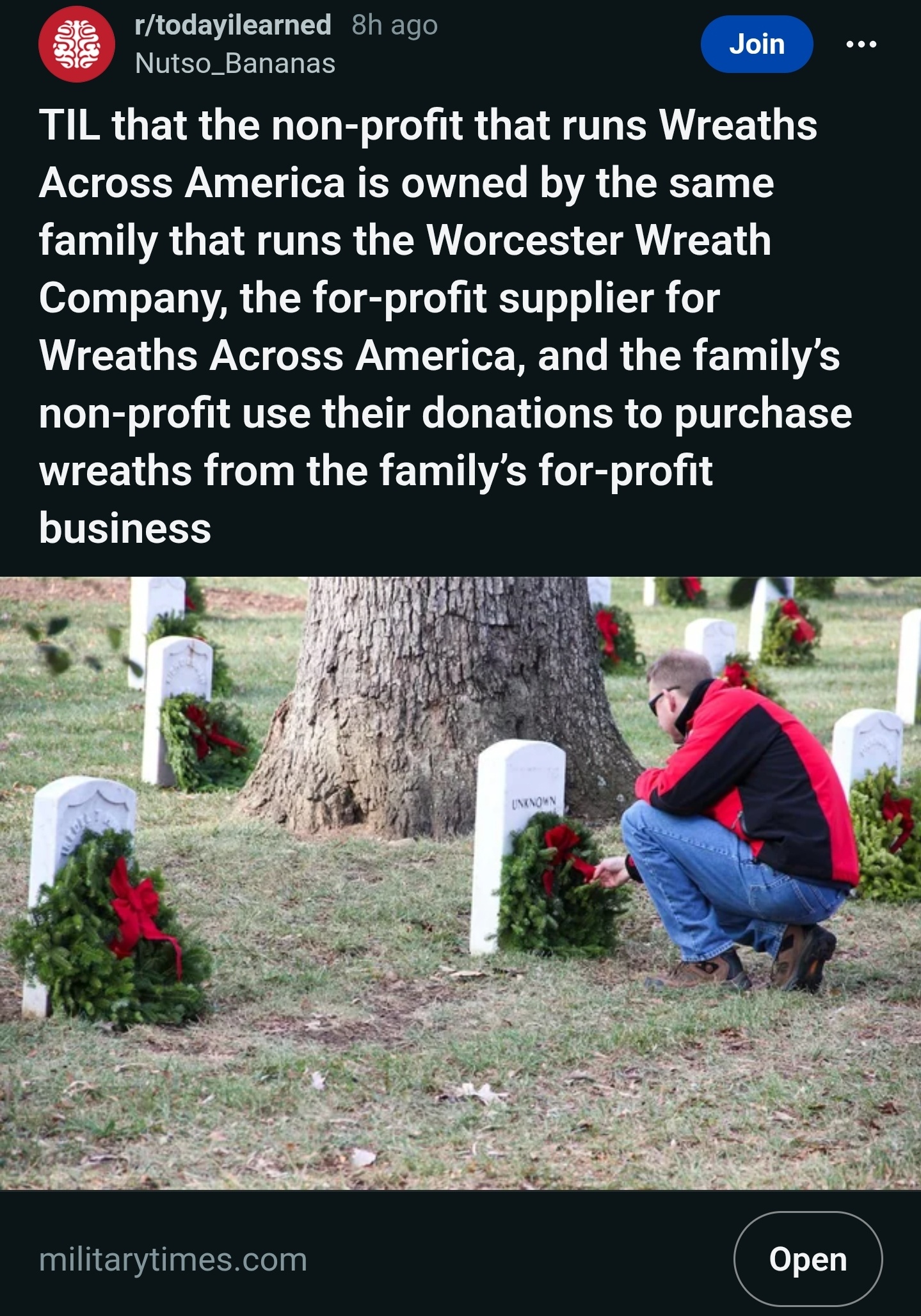 "Maybe they are providing them at cost..." Which would be fine, but they are not, the non-profit purchases accounts for most of the wreath company's profits.