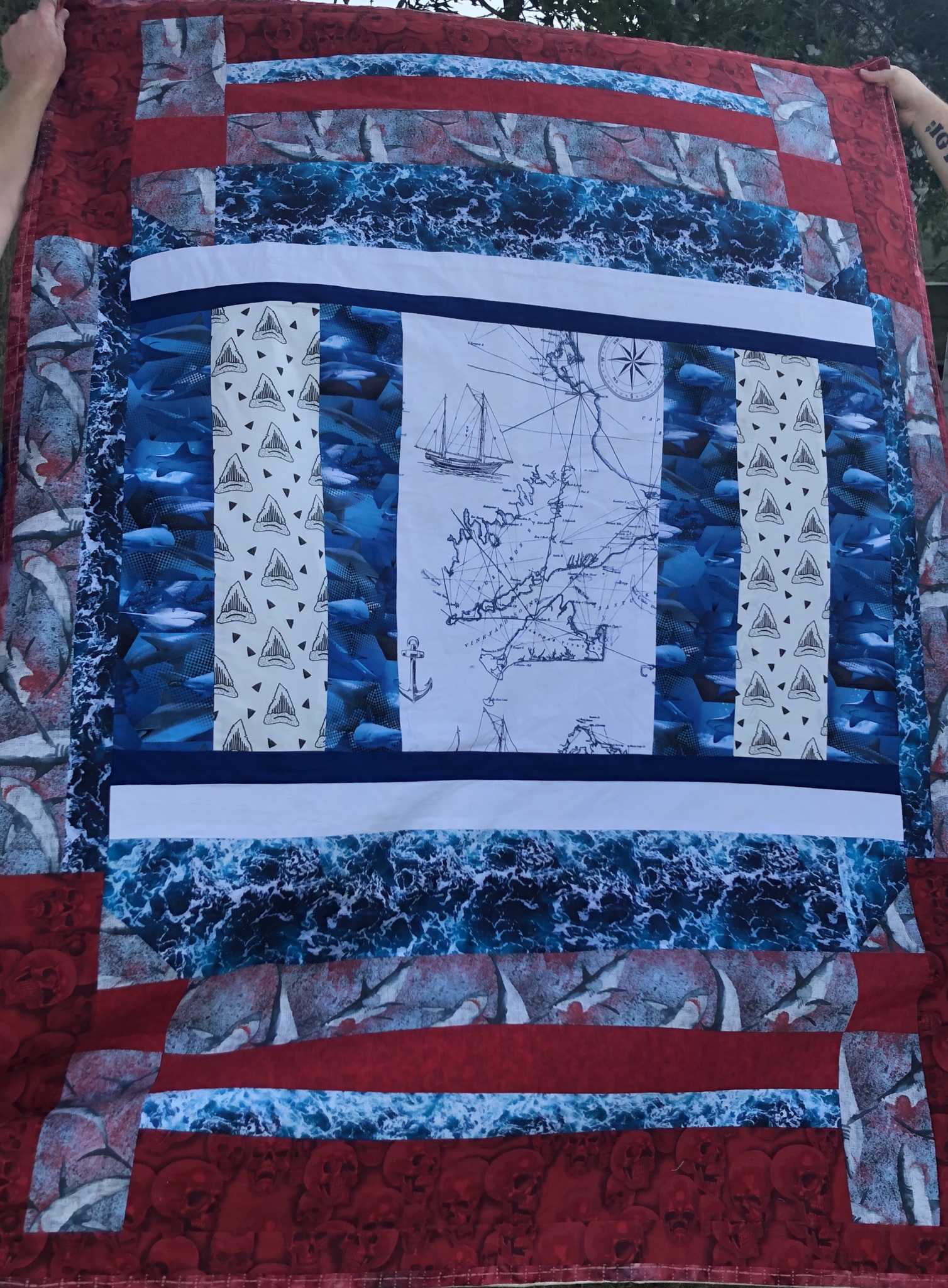 My mom is in recovery. She’s spent a lot of her time rediscovering her love of sewing and make my shark loving son this quilt. Anyone struggling with addiction- there is ALWAYS hope! And you are capable of great things with sobriety!! Don’t ever quit!