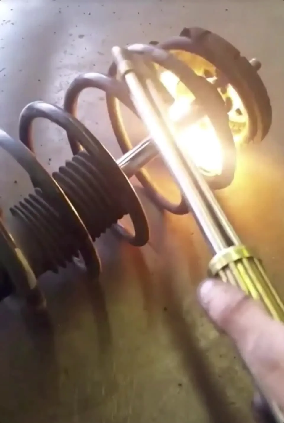 The spring is attached to the axel of the vehicle at one point and the body of the vehicle at the other, creating your suspension,