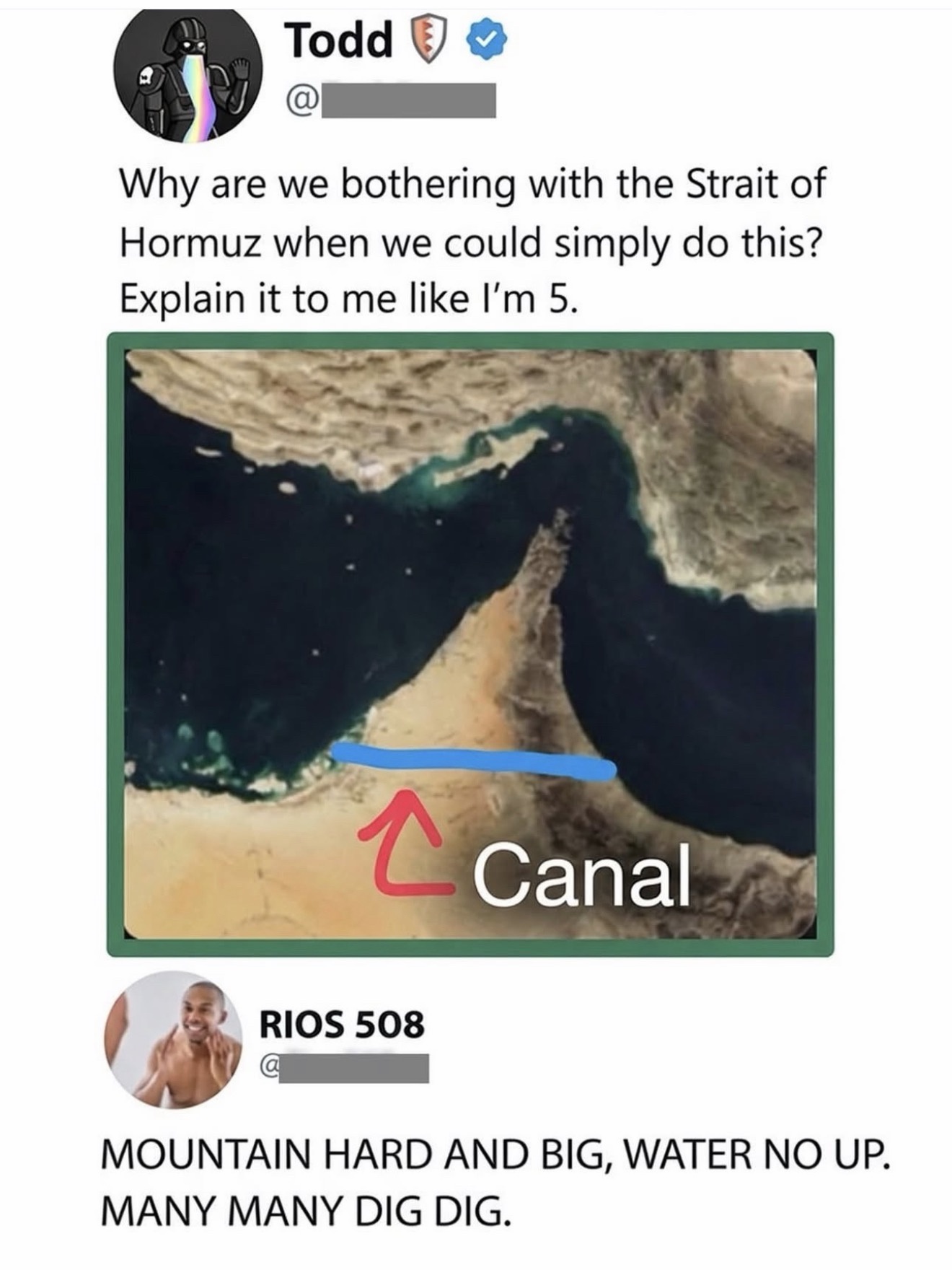 Dynamite make big horizontal hole. Or throw musk at it (please).