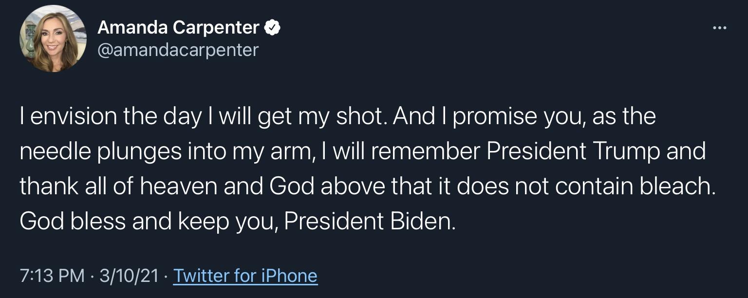 I get the joke, but thanking Biden for the vaccine doesn't make sense either. He wasn't in office to affect the original production of it.
