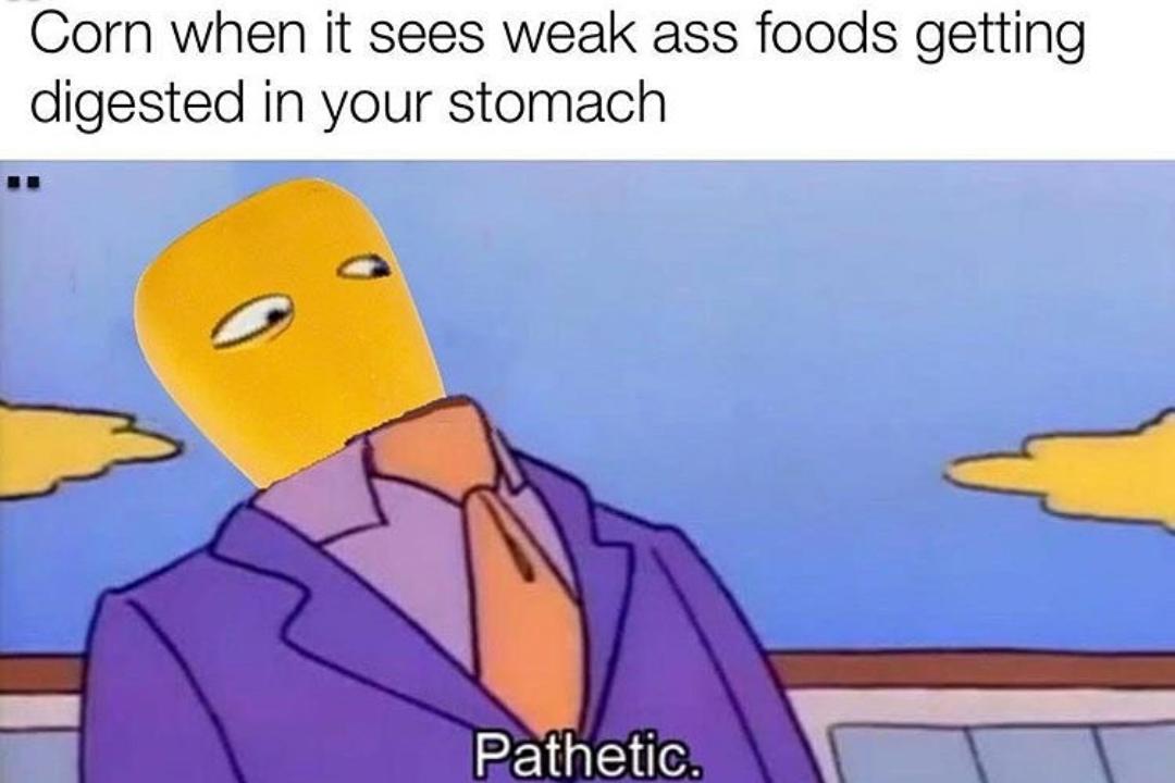 I eat corn a lot and I never see the kernals in it. Idk, maybe that's my shitty superpower or something.