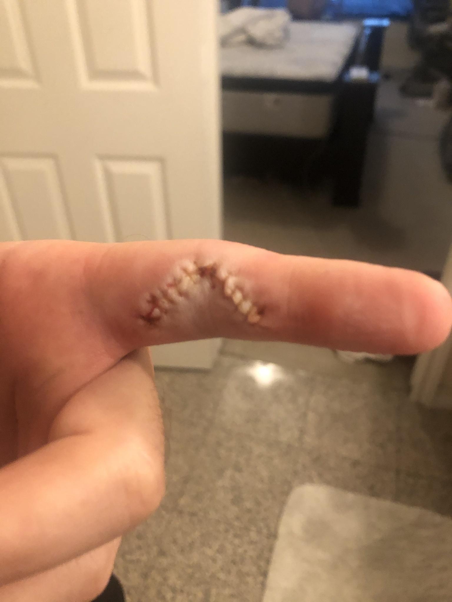 You don't know what you're talking about. It just looks like it had a bandage on it. That's what bad cuts look like if they've been bandaged