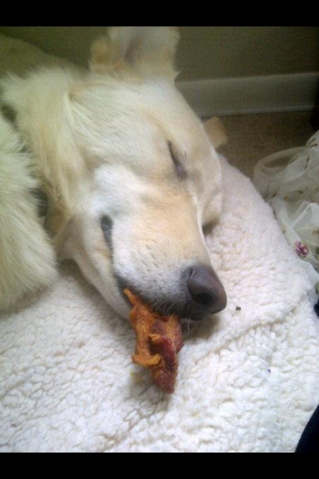 Before reading the caption I thought it was dead and the bacon was its tongue...