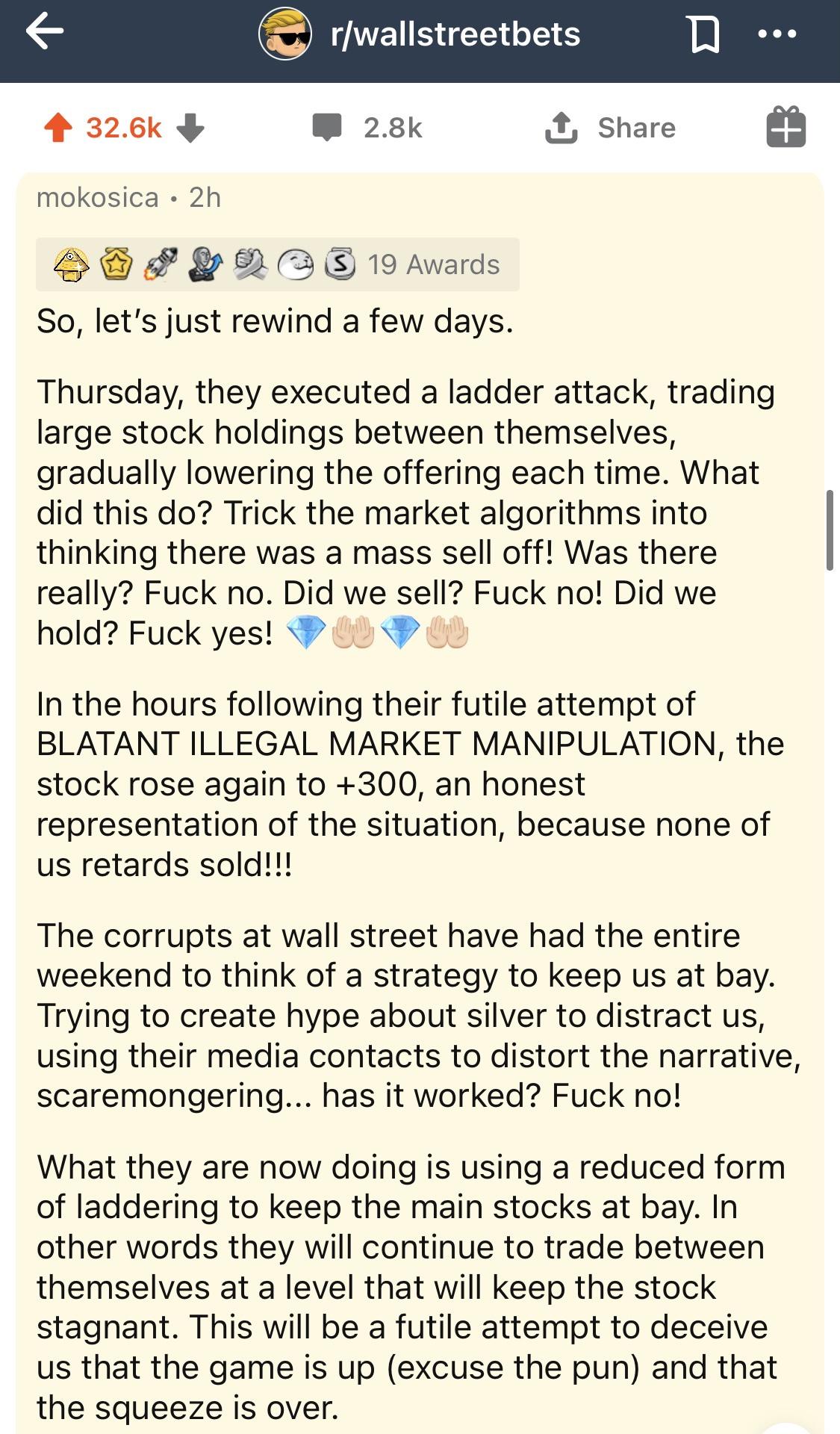 I'd love a short squeeze, but it's a mistake to use smarts against an adversary that's pretending to use smarts while actually using power.