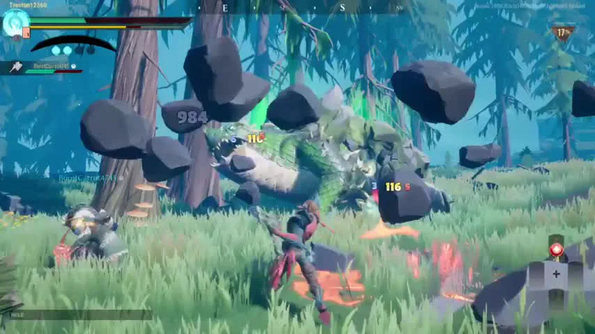 Dauntless, its monster hunter pretty much, good game though, worth a few hours atleast if you like these games