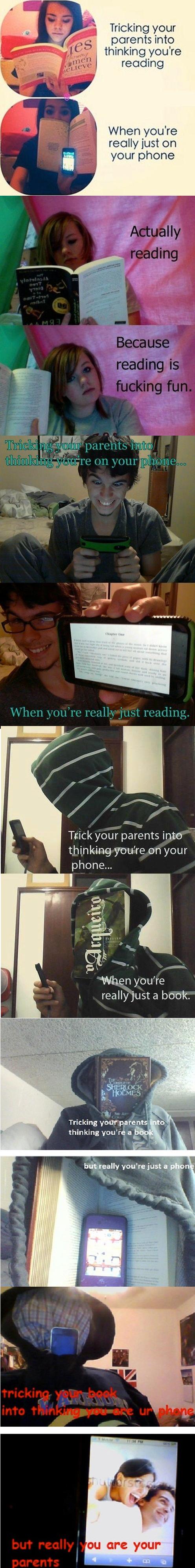 ...Girl #2 (Reading is fun!) is reading her book upside-down.