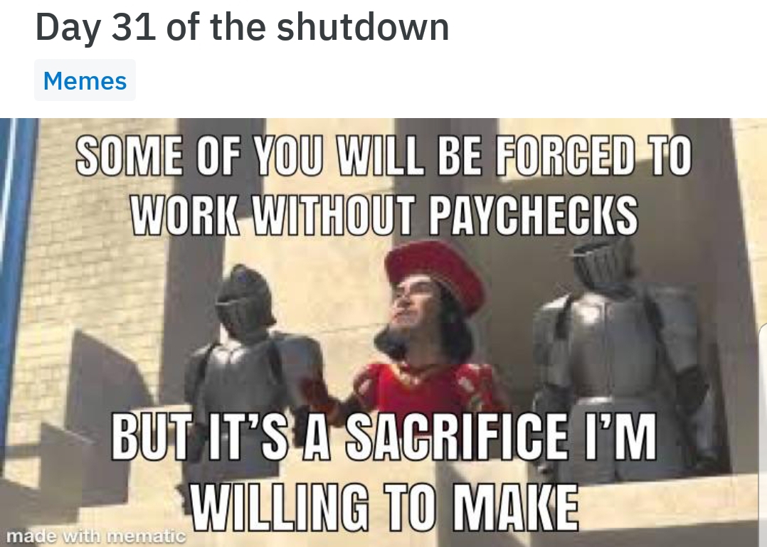 Trump has been saying government workers are okay with the shut down and they support it for the wall. Do you know anyone that actually does