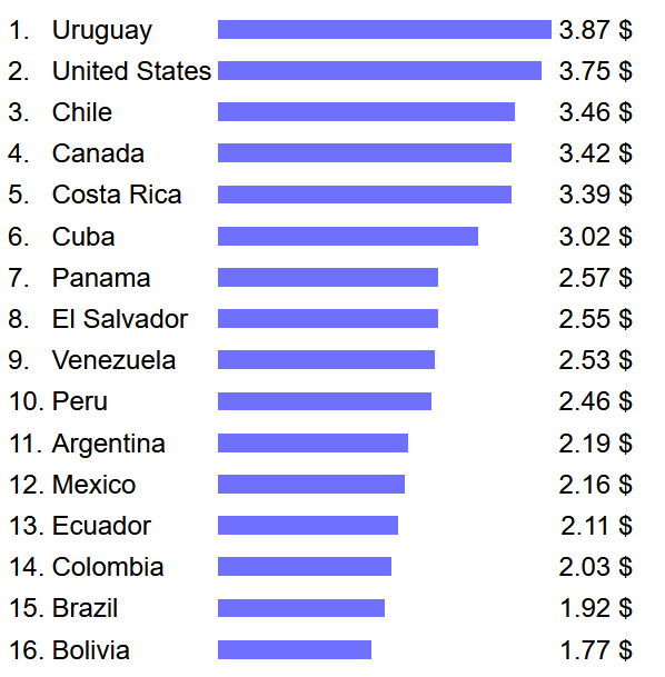 Eggs prices by countries in North and South America