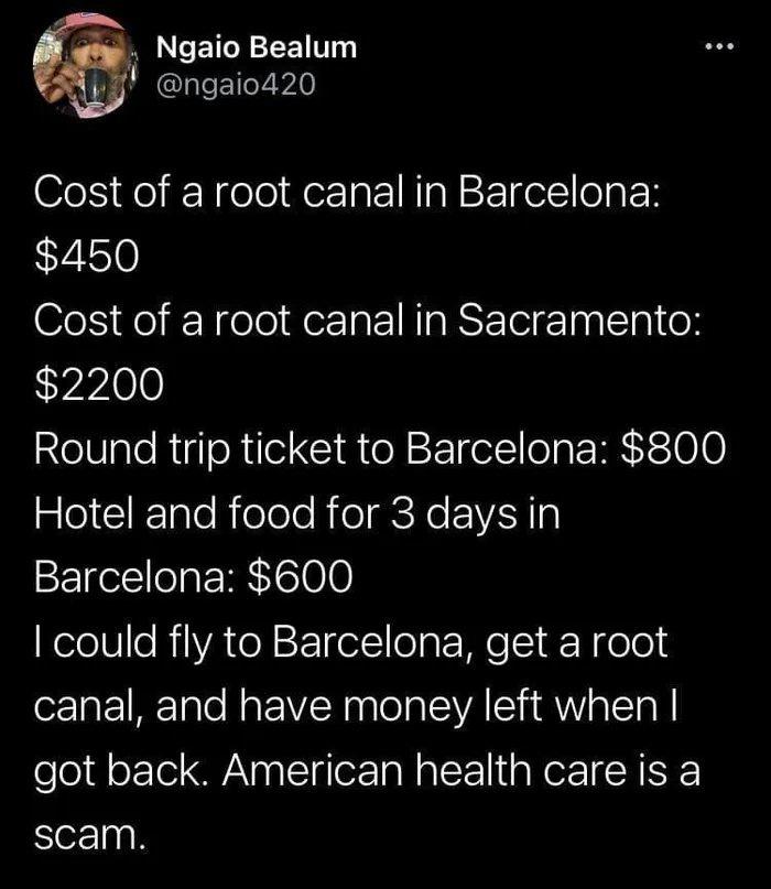 That's why I (used to) go to Thailand for dental. Cheaper, and a holiday!
