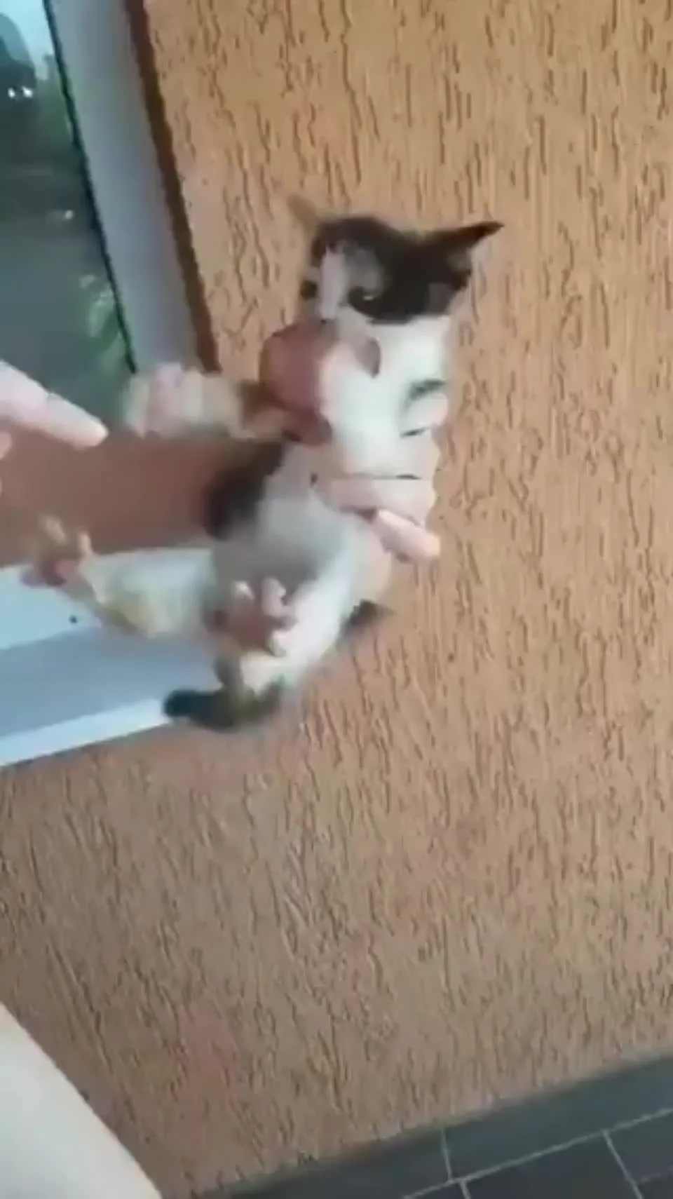 Stomach is inflated, a sign of worms. Looks malnourished and resource guarding common behavior in feral cats. This in not normal behavior.