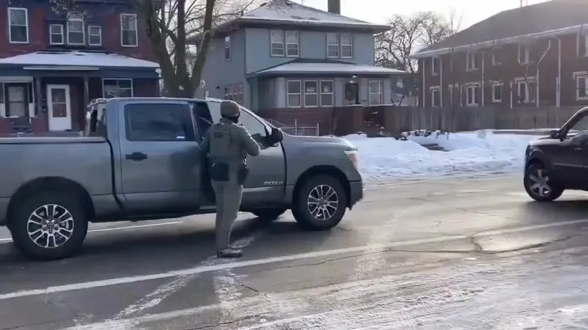 From the other video, looks like she was shot by an ICE agent off to the side, who was firing at the driver of the vehicle as it was moving away.