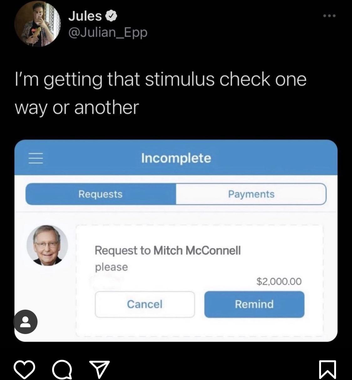 Isn't this sort of the issue in the first place as to why they won't allow the stimulate check? Disagreeing just because of party blah blah