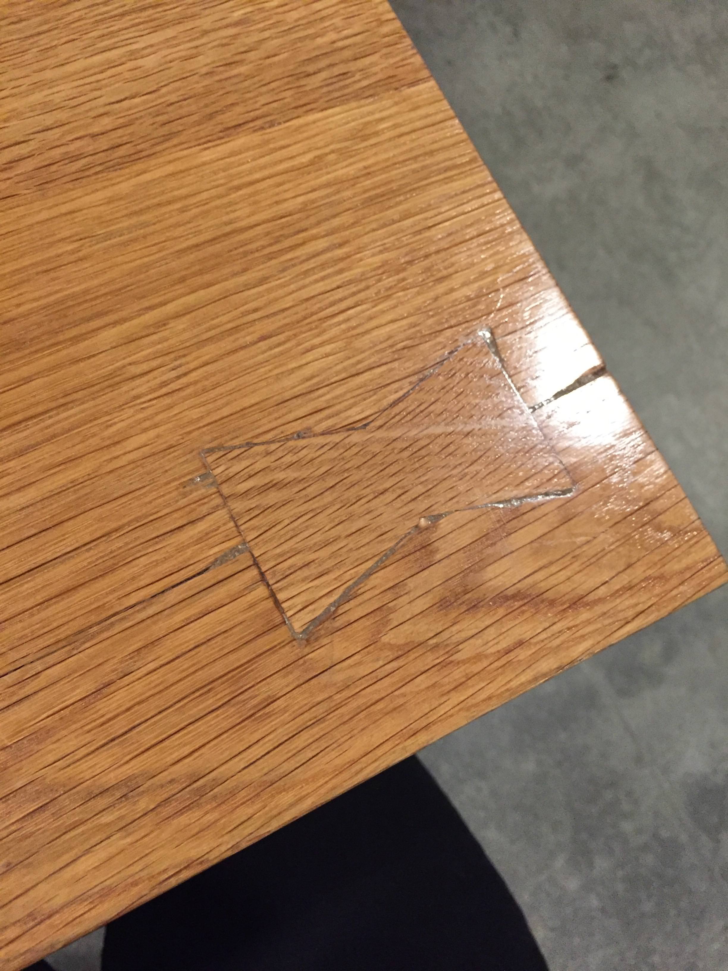 Custom table spotted at a local brewery. Might have intended it to be an aesthetic detail but it's cut and executed so poorly, I'm not sure.