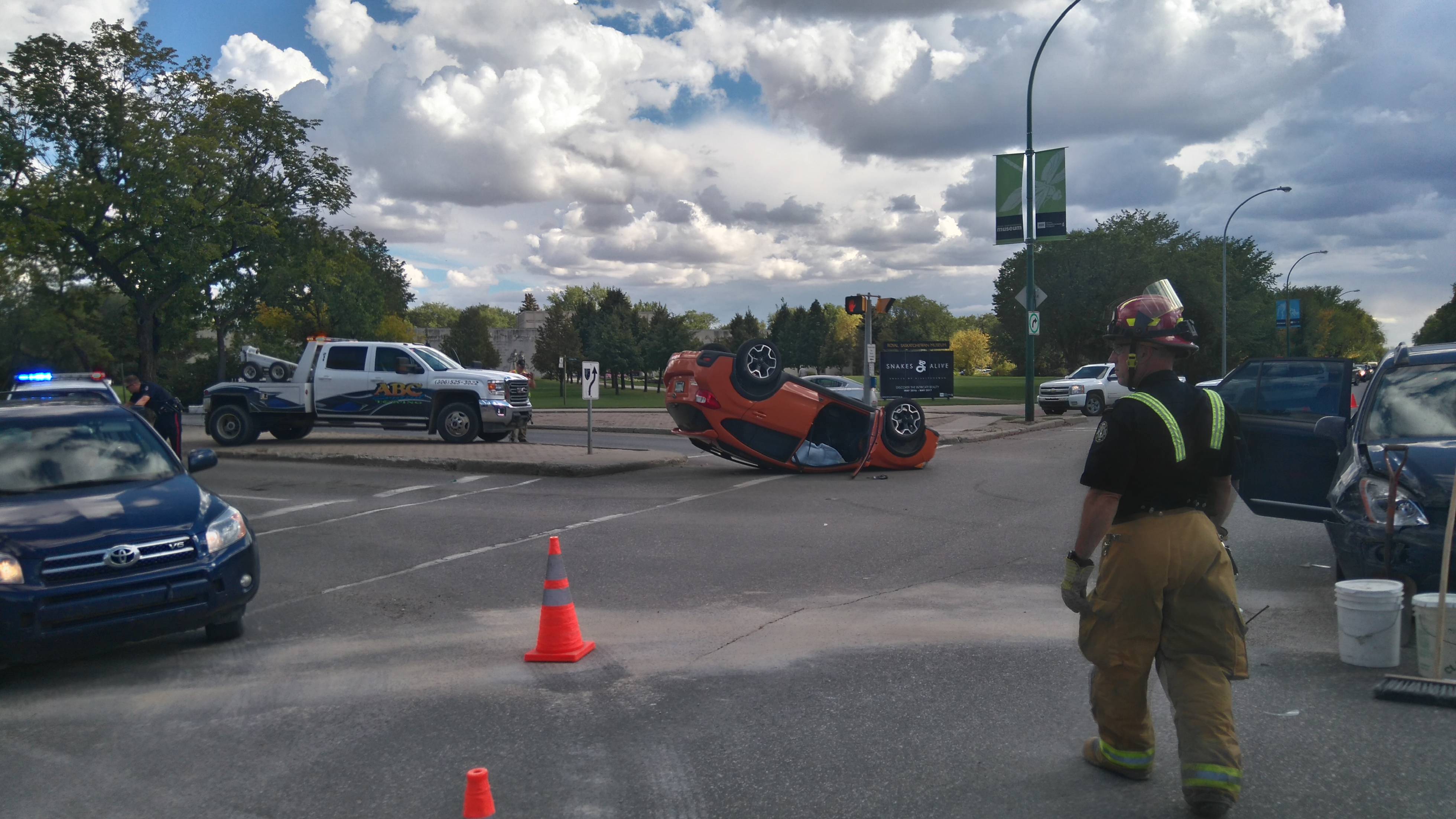 A front tire blew. Imagine the damage done to the road already.