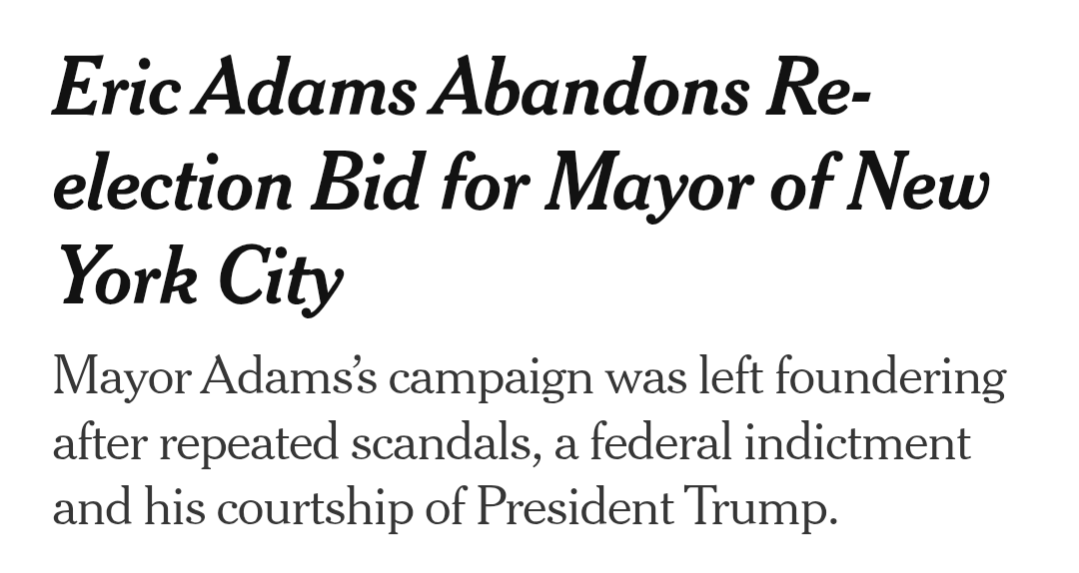 Eric Adams drops bid for mayor