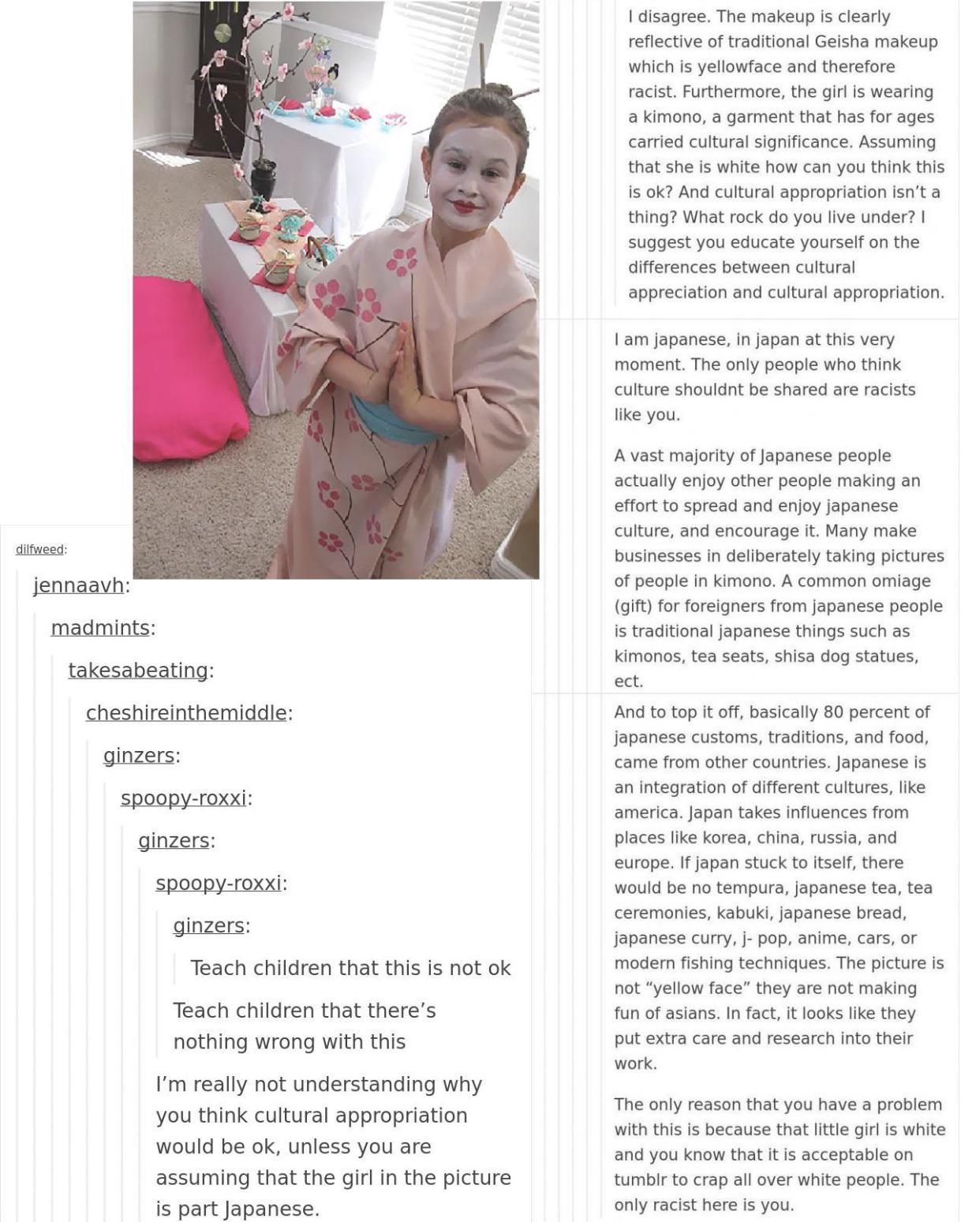 Cultures should be shared, unless there's reasons a culture is closed. Things that stereotype cultures is different from re-enacting.