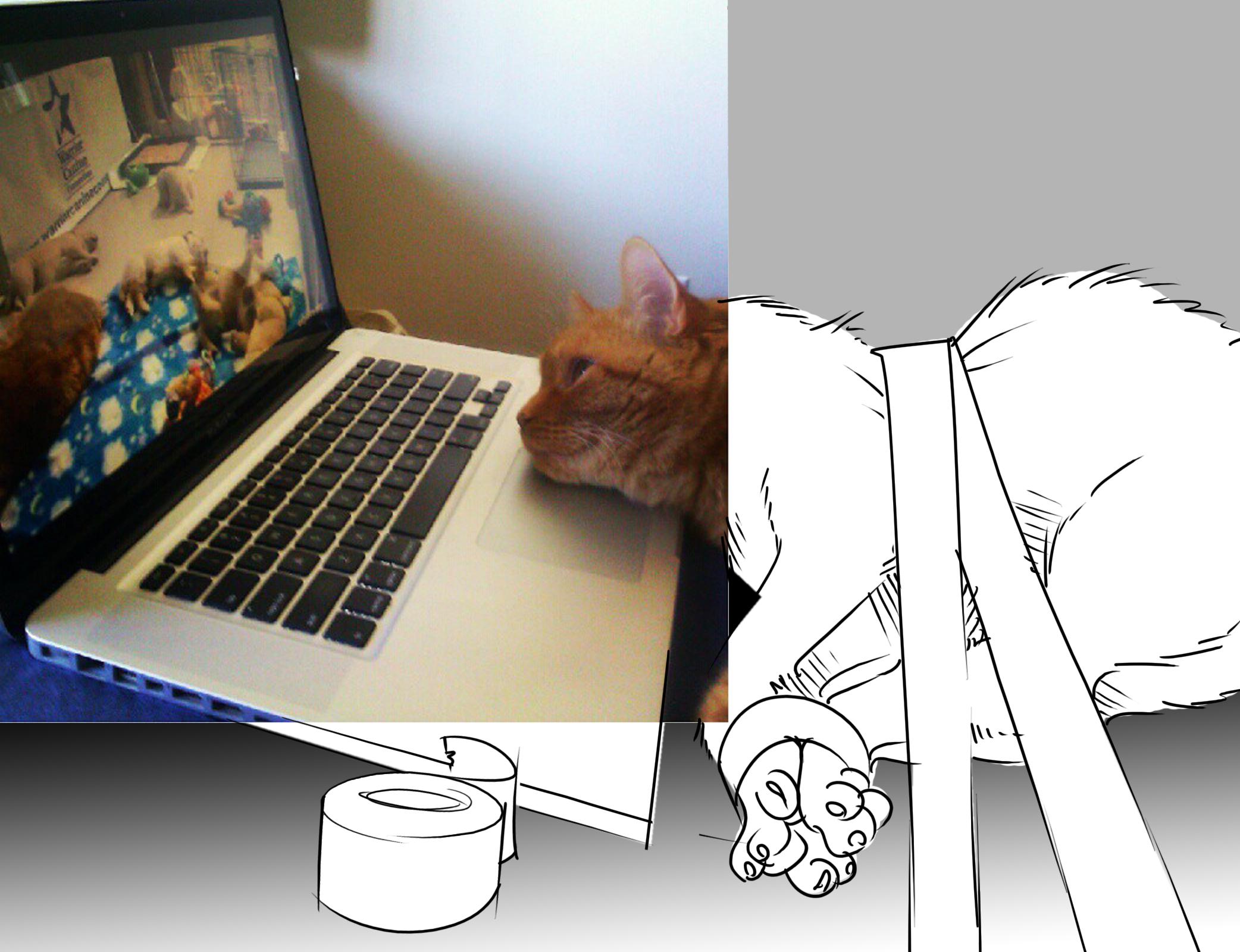 I intended the second line to reference the cat holding a newspaper