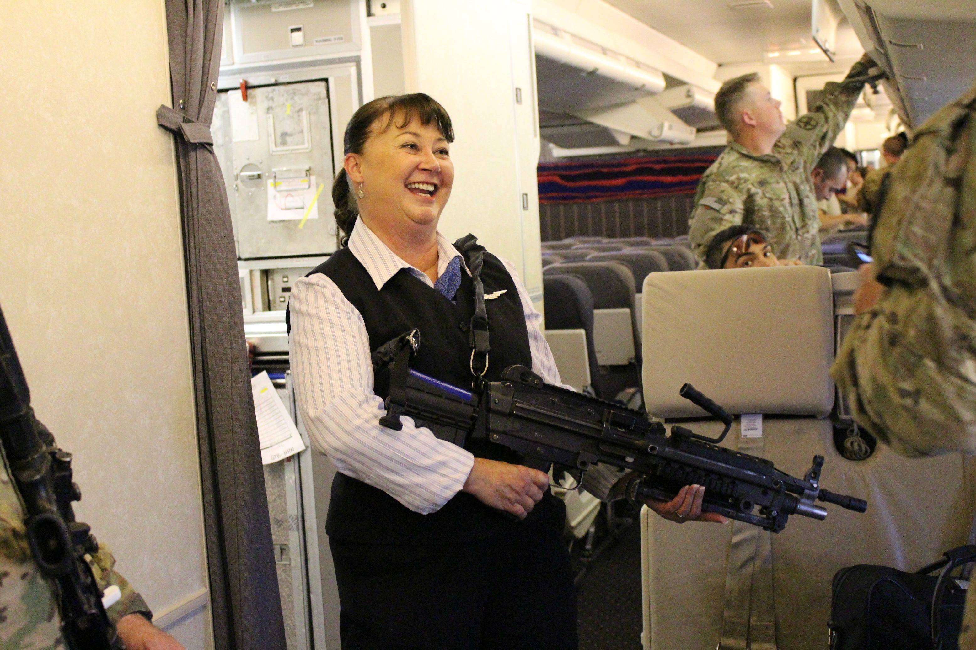 With no ammo, no bolt inside the weapon, and a plane full of people deploying to Afghanistan? Not likely lol