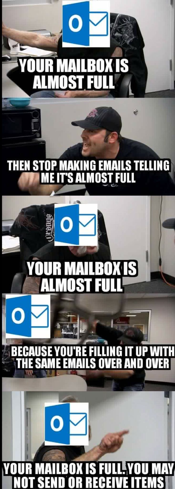 https://www.lifewire.com/all-mail-folder-outlook-1173767 Do this and delete/archive and you shouldn’t hit limits