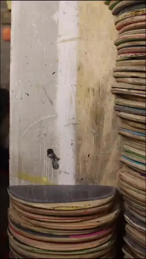 You can see the respirator right after he unclamps the glue-ups.
