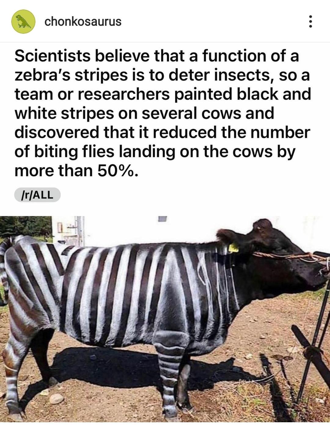 How was it determined it was the stripes, and not the paint itself? Did they do a control w/ paint matching the natural color of the cow?