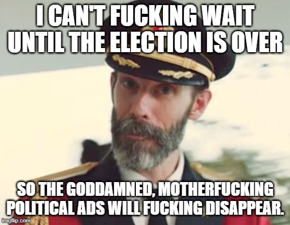 Radio is playing more political ads than actual music too. I'd rather work in complete silence than have to hear the same 2-5 political ads all day.