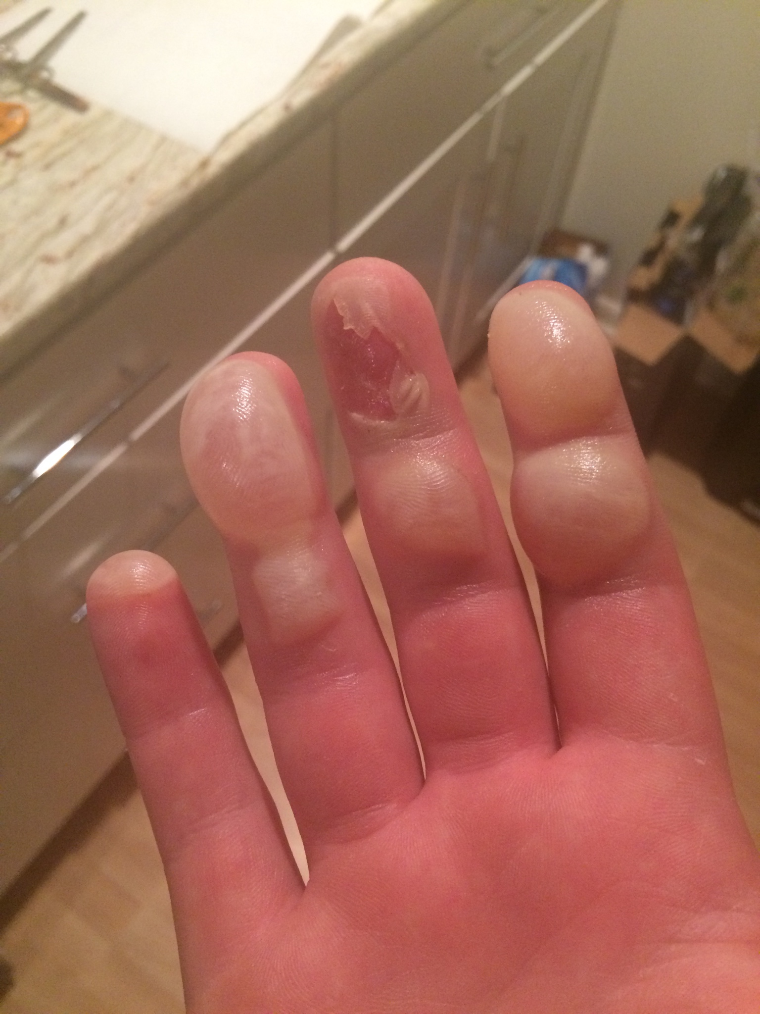 I especially enjoyed the blister juice on the counter in the background.