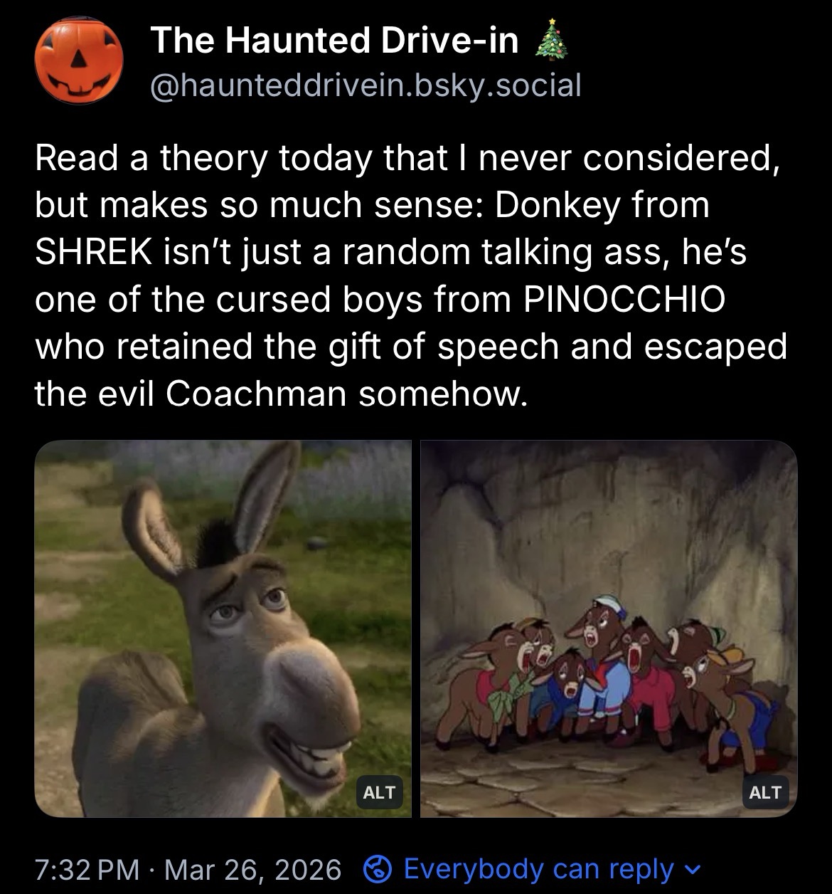 Oooh I like that. Those donkeys were terrifying esp the one saying he wanted his mommy.