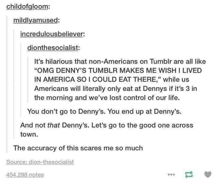 The truckstop Denny's are actually better and less rowdy than the standalone Denny's. Let that sink in.