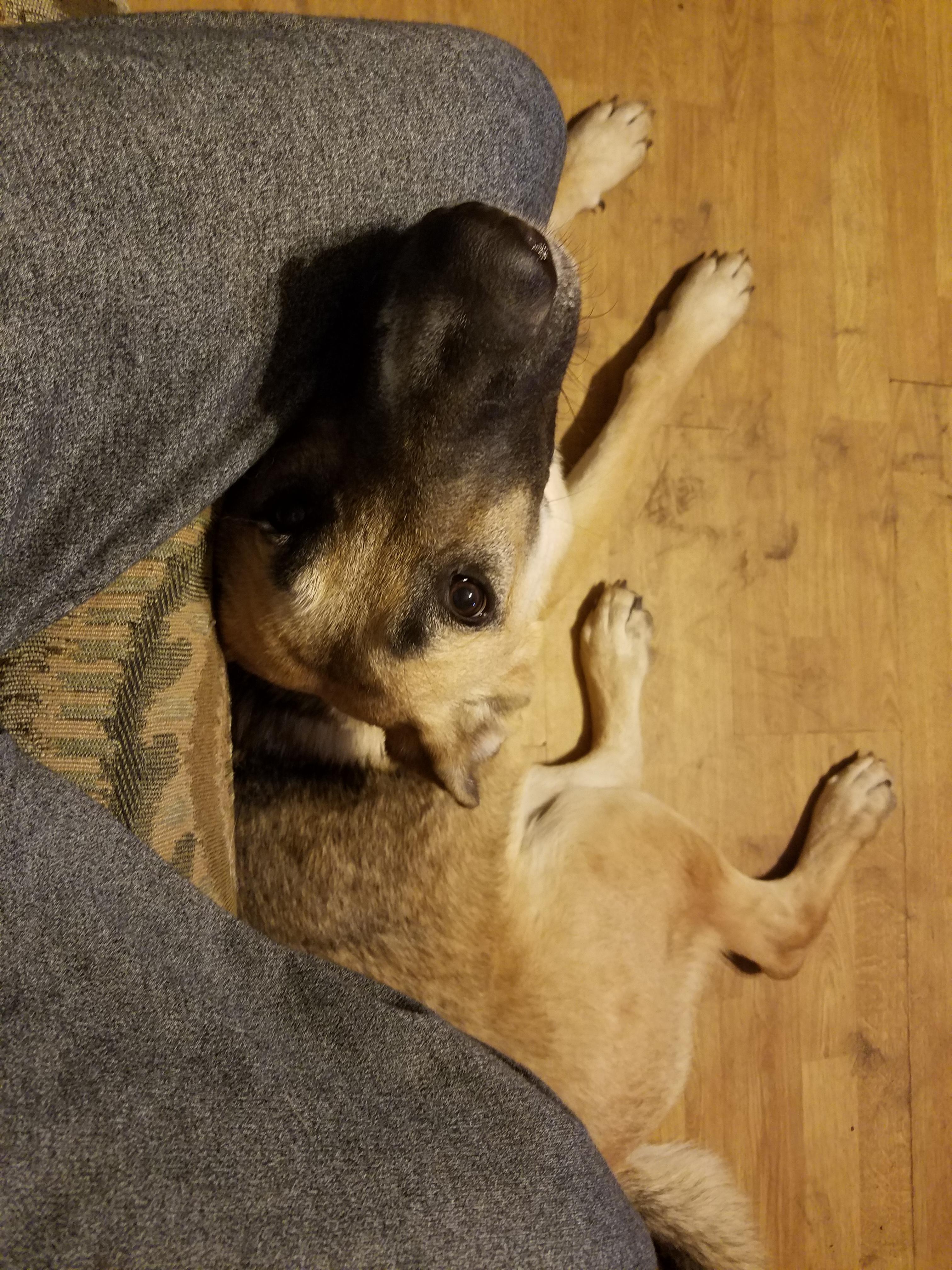 http://imgur.com/WzKWDlZ quite similar to my woofer, adopted 3 weeks ago from shelter. Doggos 4 life
