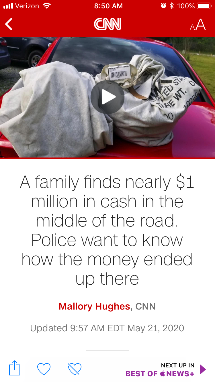 Family finds $900,000 in the middle of the road