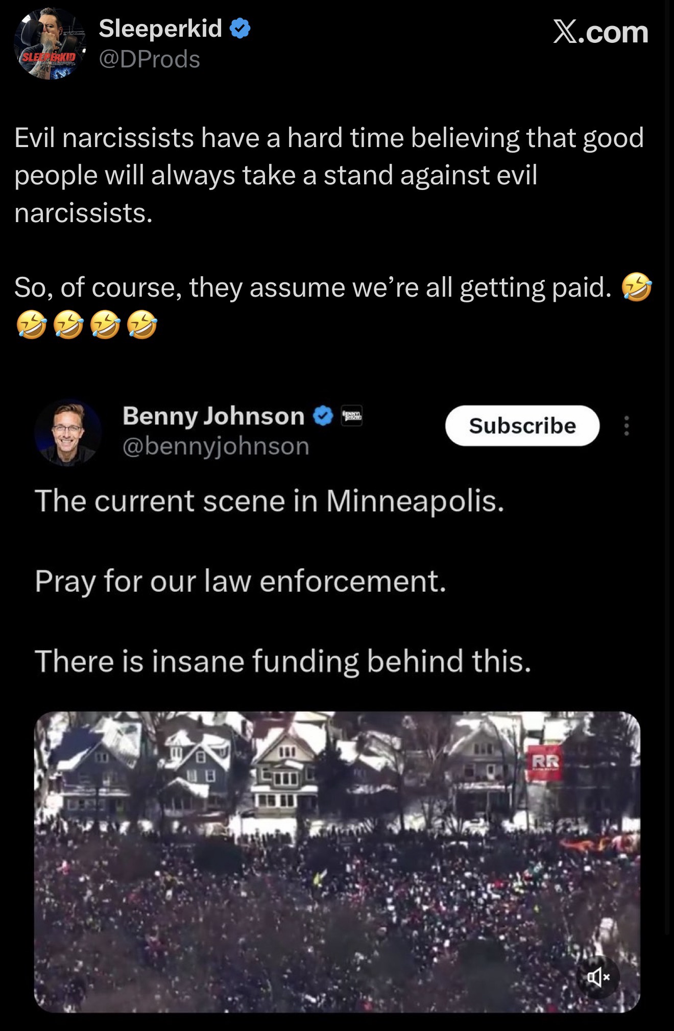 Funny comment coming from benny "the ruble" johnson