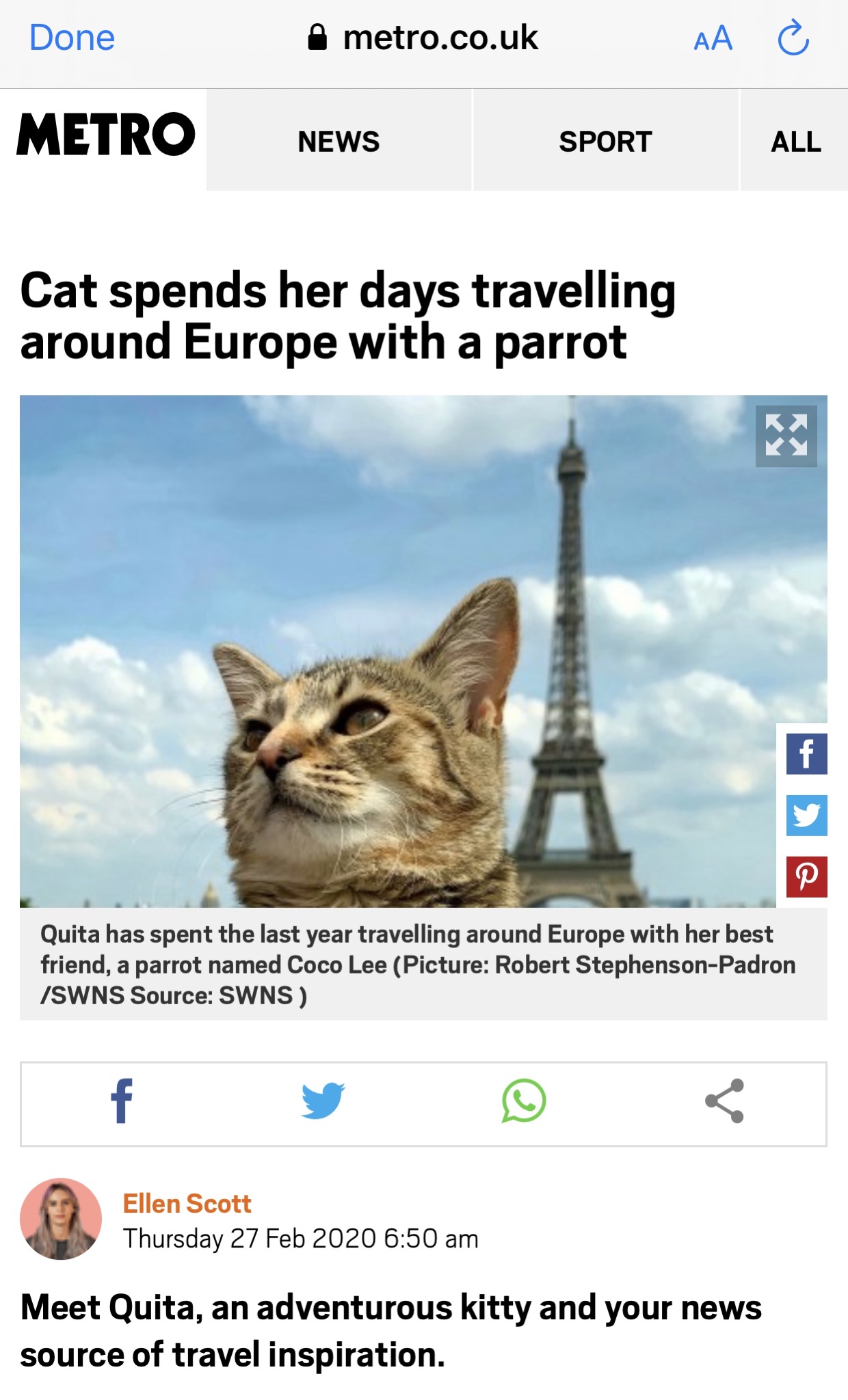 ❤️ I’m Quita!👧 🌴 Adventurer. 💃🏼 Pet model. 🐈 Emotional Support Animal. 👑 Pet by Prince Charles. 💼 Office cat at Penrose Care, the UK’s pioneer of ethical home care. 👶 01/2019. Goal: To bring joy and happiness to those who can’t meet me in person. Also on Insta: @quitathekitty ❤️🐈
