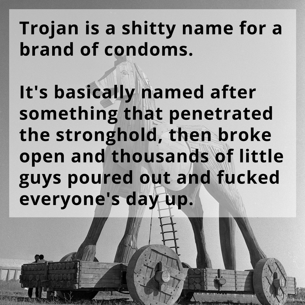 Yes, the only way to get through a Trojan wall is if you let someone poke your plan full of holes...or condom.